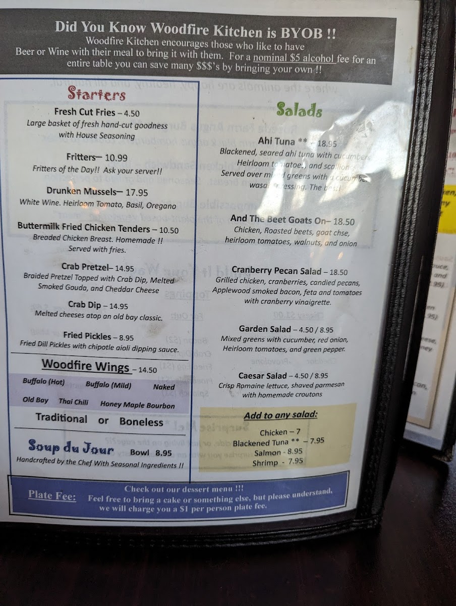 Welcome to Woodfire Kitchen, a culinary gem nestled in Parkton, MD. Known for its cozy ambiance, this restaurant excels in delivering hearty, flavorful dishes that cater to both casual diners and special occasions. The standout item on their menu is the Irish Creme Brulee and the rich Belgian Chocolate Mousse Cake, both priced at $11.50.