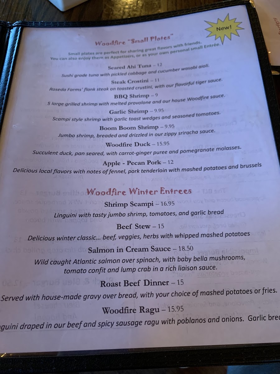 Starters like the Crab Dip ($14.95) impress with their generous portions and delectable flavors, while the Woodfire Gumbo ($9.25) is a must-try for those who love spices. And let's not forget the wood-fired pizzas, praised for their perfect balance of toppings and sauce.